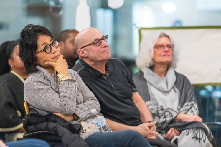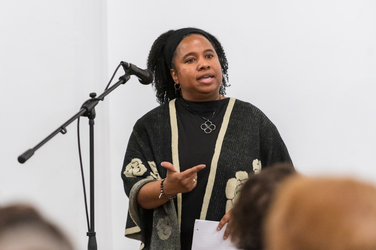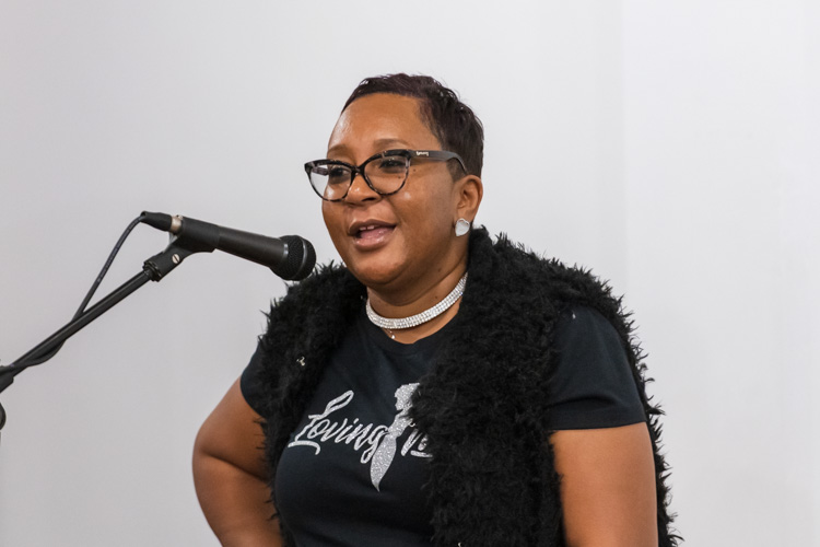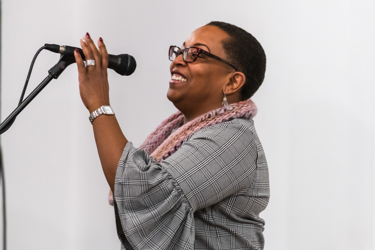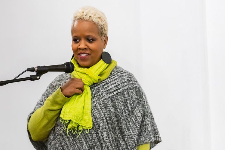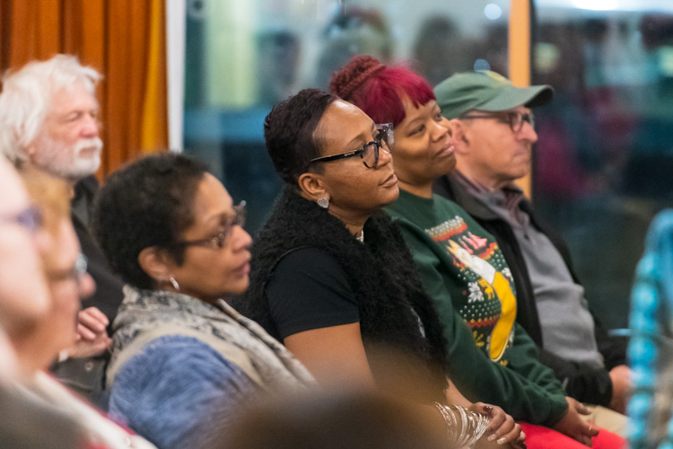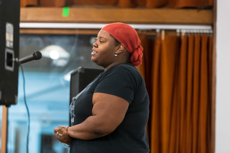 Cherisa Allen, an EMU graduate who works at Ypsilanti Community High School, told a story about growing up on Harriet Street in Ypsi. She focused on the role that grandmothers and other “mean” older ladies had in raising all the children in the neighborhood, and the role of local barbershops in building community and caring for kids.